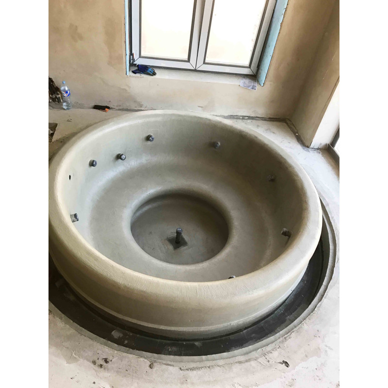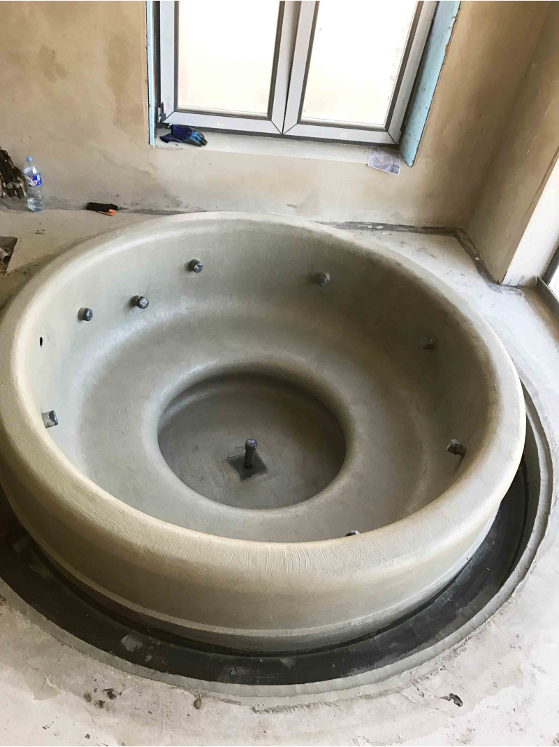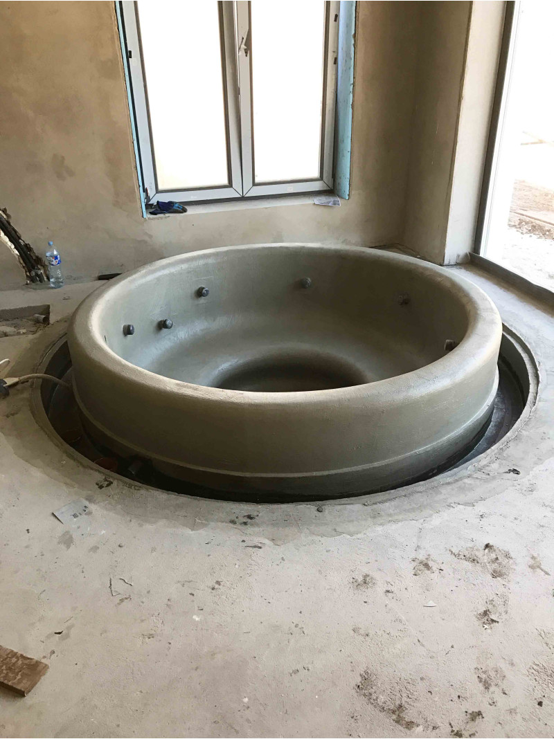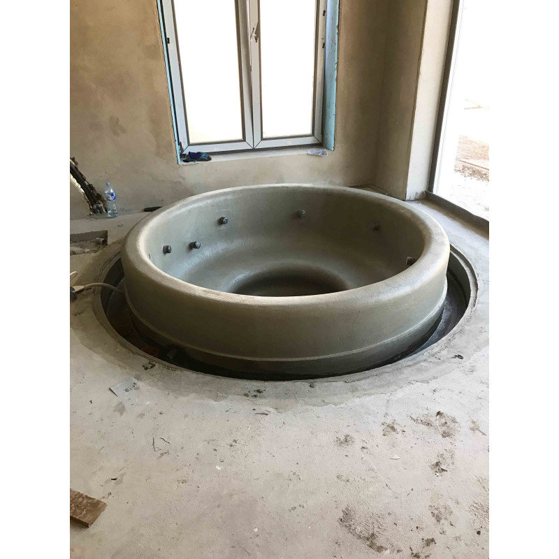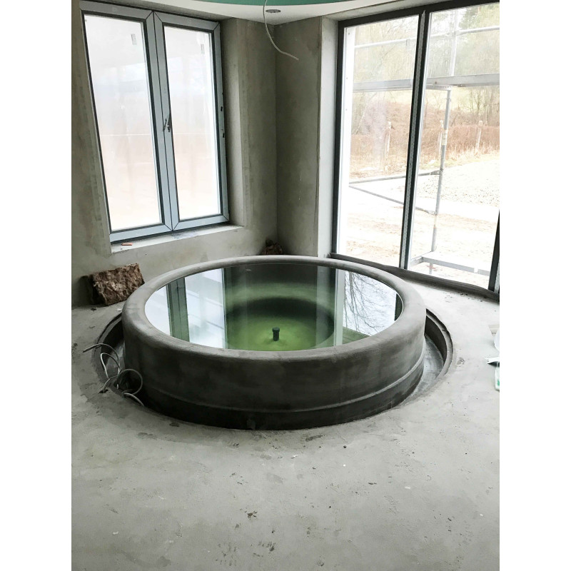 Basen jest okrągły, z miejscami do siedzenia wokół całego basenu. Wewnętrzne powierzchnie basenu zostały uformowane przy użyciu ciągłego cięcia polistyrenu XPS 300. Jest to niezwykle mocny i odporny na wilgoć i ciśnienie materiał.