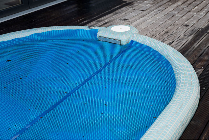 Basen wyposażony jest w masujące dysze wodne, podwodne oświetlenie LED RGB oraz kurtynę basenową zapobiegającą przedostawaniu się brudu do wody w basenie.