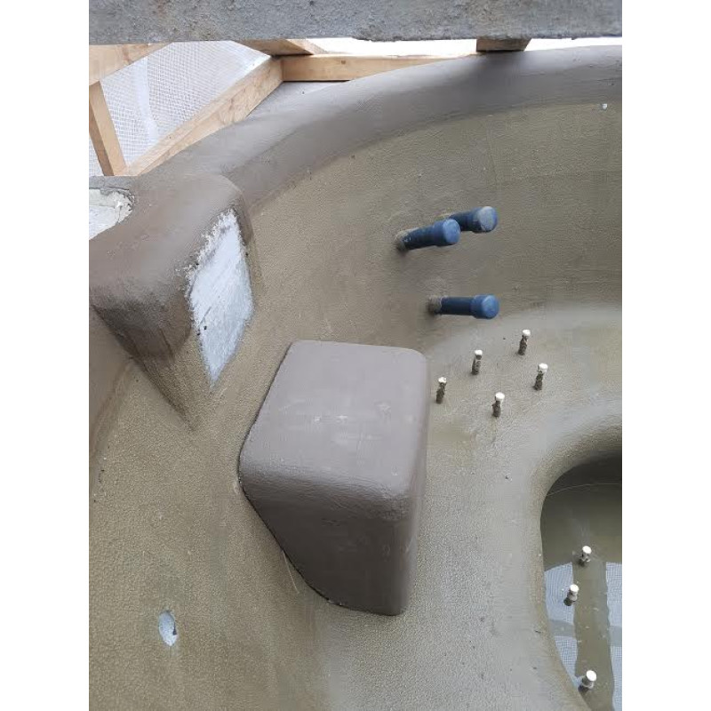 Formy basenowe wykonane są ze specjalnego polistyrenu ekstrudowanego na indywidualne zamówienie. Wnętrze pokryte jest mozaiką z pokruszonego szkła.