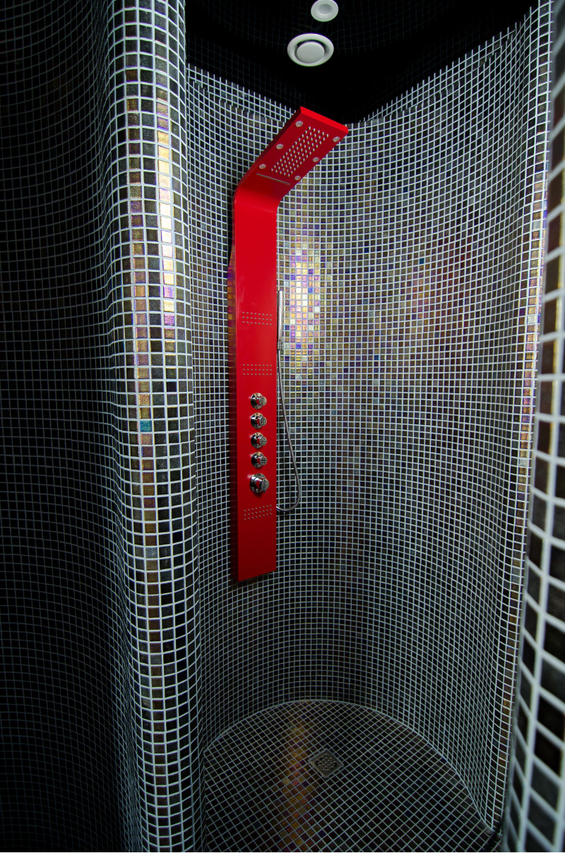 3 zakrzywione prysznice. Wyposażone w okrągłe kabiny prysznicowe ze wzmocnieniem i hydroizolacją. W jednym z pryszniców znajduje się dębowe wiaderko z plastikową wkładką.