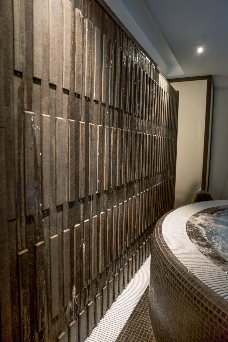 Basen otoczony jest ścianą bieżącej wody. Zainstalowane są systemy zbierania wody, wycieków, filtracji. Spadająca, kapiąca woda tworzy tropikalny egzotyczny styl w spa. Atmosfera tworzona przez Wschód pozwala zaznać ekskluzywnego wypoczynku.