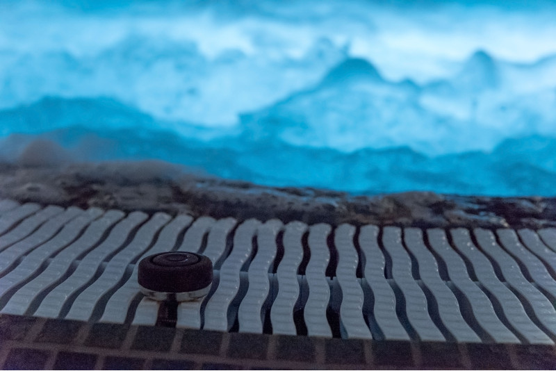 Woda w basenie jest oświetlona podwodnymi diodami LED.