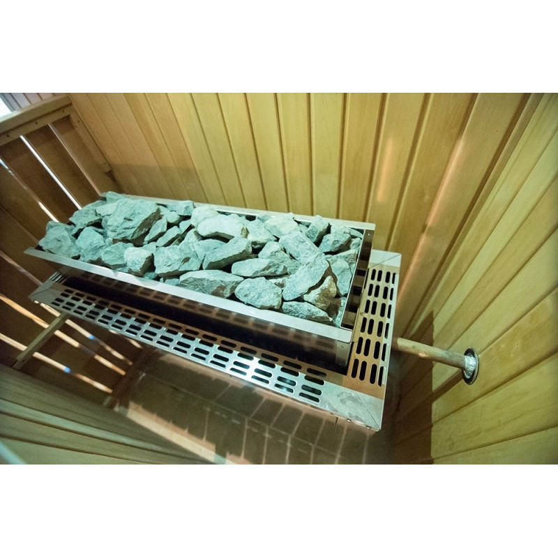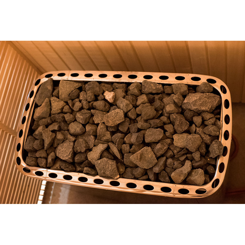 - Piec wypełniony jest 80kg kamieni do sauny.
