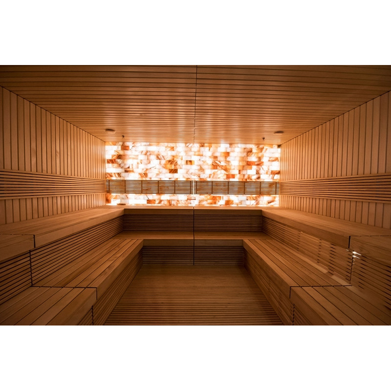 Cegły z soli himalajskiej wybrane do dekoracji ścian sauny z wbudowanym oświetleniem tworzą przytulną atmosferę i dodatkowo wzmacniają działanie sauny. Sole himalajskie to naturalny jonizator, który skutecznie poprawia jakość powietrza emitując jony ujemne. Powietrze zjonizowane ujemnie poprawia zdrowie, pomaga w leczeniu wielu dolegliwości takich jak: astma oskrzelowa, choroby płuc i oskrzeli, po zawale, nadciśnienie, wrzody przewodu pokarmowego, nieżyt żołądka, choroby tarczycy, zapalenia skóry, różne alergie, choroby nerwowe, pomaga przezwyciężyć udar mózgu. Korzystanie z sauny w saunie z solami himalajskimi ma dwie zalety.