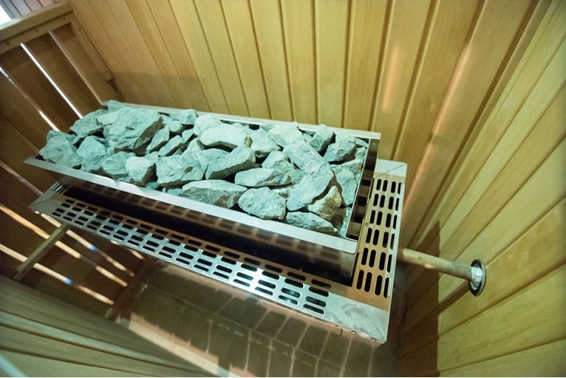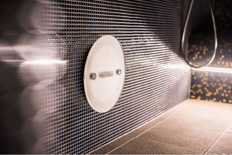 - Saunę ogrzewa piec elektryczny Harvia Profi. Ten grzejnik jest przeznaczony do największych łaźni publicznych. Niezwykle wytrzymała konstrukcja wykonana ze stali nierdzewnej.
