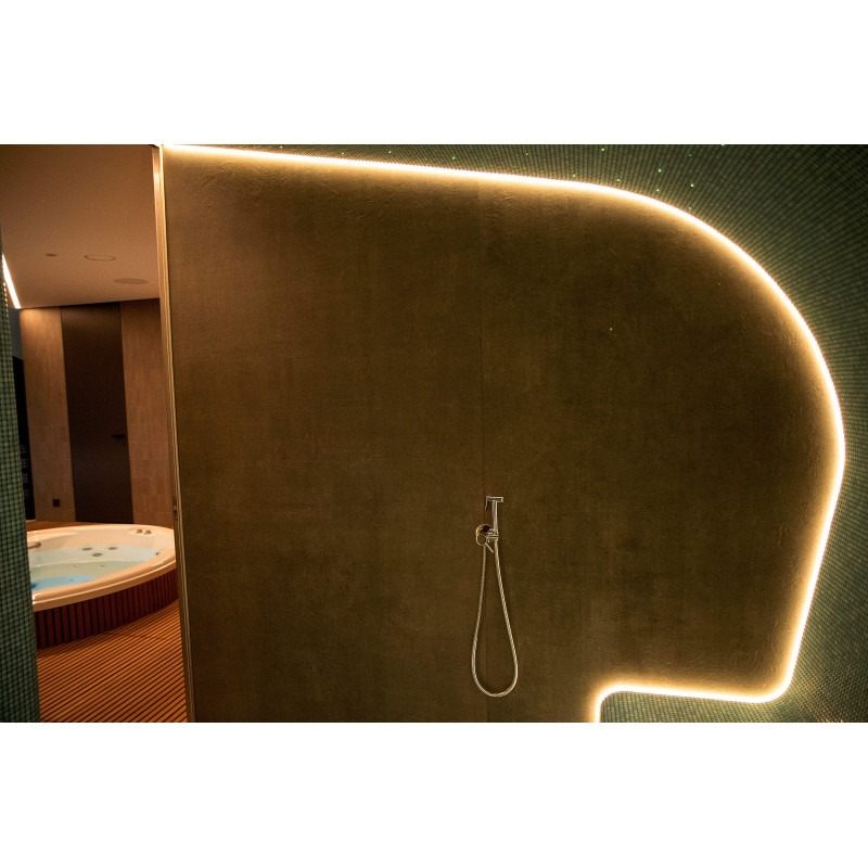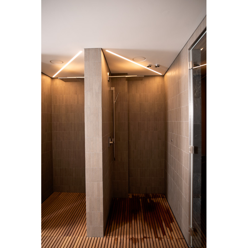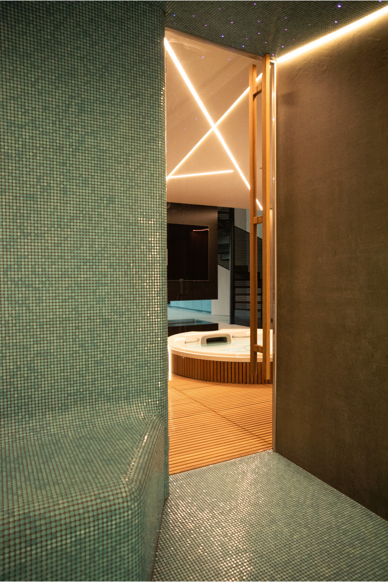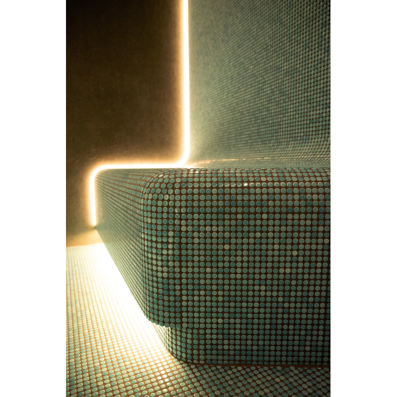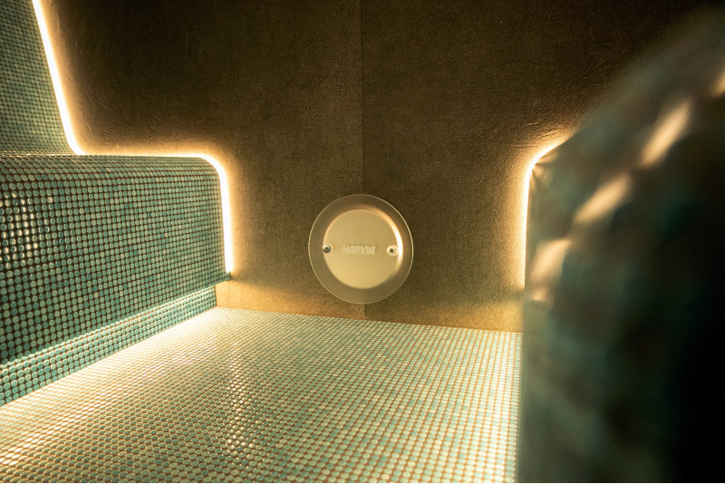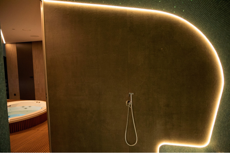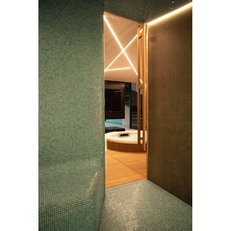 W strefie SPA zainstalowano również łaźnię parową , w której zastosowano najnowocześniejsze rozwiązania techniczne: