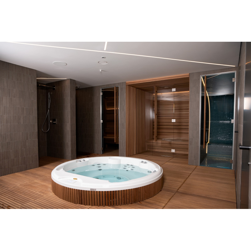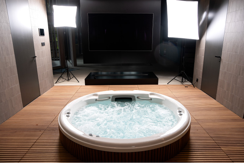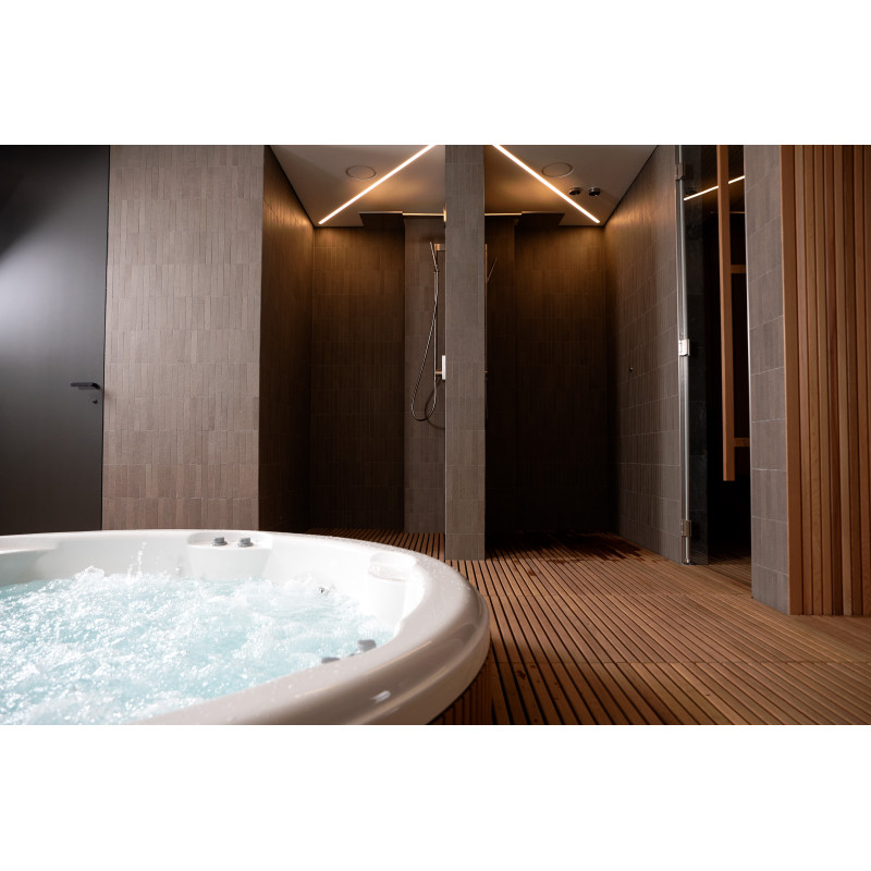 Do tego projektu wybrano basen z hydromasażem od pierwotnego producenta „Jacuzzi” , a wszystkie procedury podłączania, uruchamiania i testowania zostały wykonane w pełnej zgodności z normami technicznymi. Ten basen jest symbolem komfortu i niezawodności, zapewniając najwyższej klasy relaks.