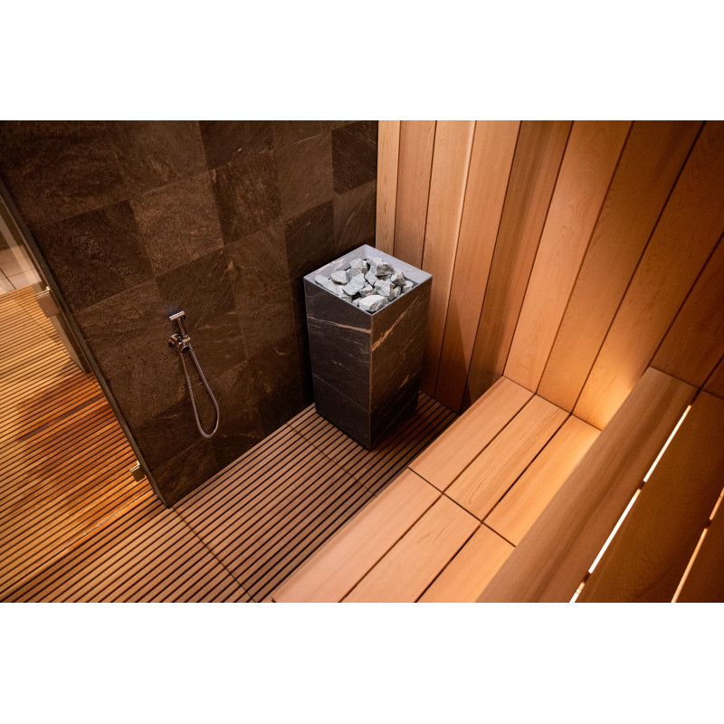 Elektryczny piec do sauny Tulikivi Tuisku Nobile ze sterownikiem Harvia Xenio Combi CX110C i generatorem pary Harvia o mocy 4,5 kW ;
