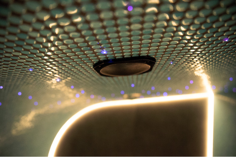Niepowtarzalny nastrój tworzą światłowodowy system „Starry Sky” i zmieniające kolor oświetlenie LED . Dodatkowe oświetlenie LED jest zainstalowane pod ławkami i wzdłuż tylnej ściany;