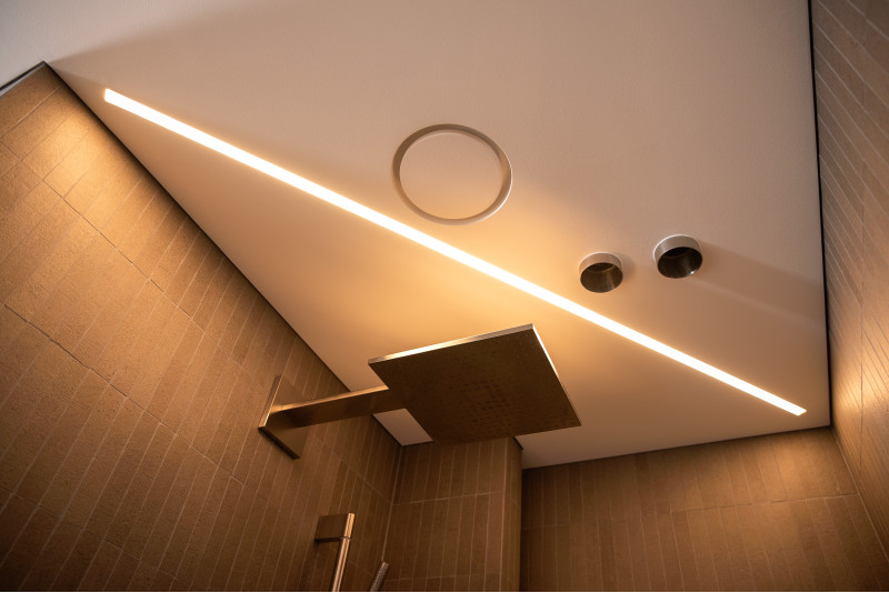 Pochylony sufit zapewniający lepszą cyrkulację pary;