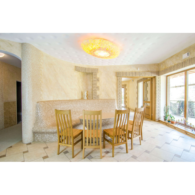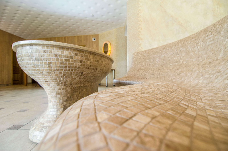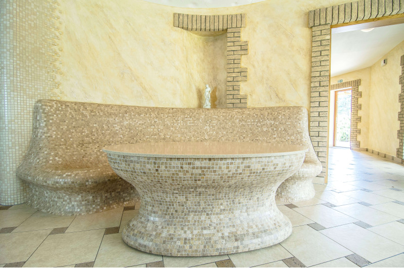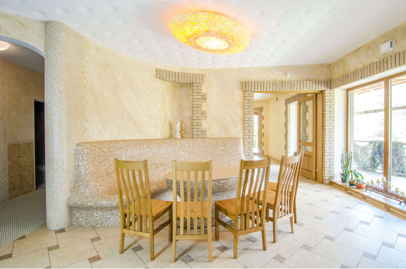 Pokój ten wyposażony jest w jasną i przestronną ławkę oraz stół do sauny.