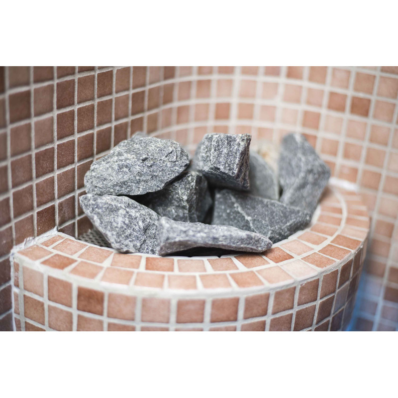 Sauna wyposażona jest w wazon parowy, który pełni funkcję osłony parowej, przez którą para przedostaje się do sauny. Zdobiony kamieniami z diabazu oliwinowego.