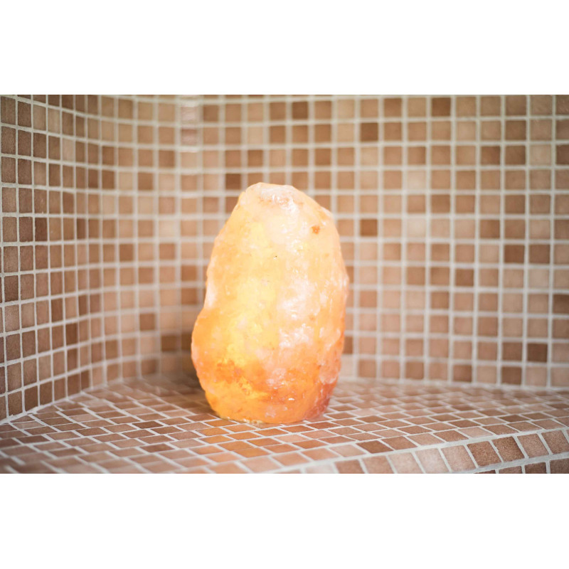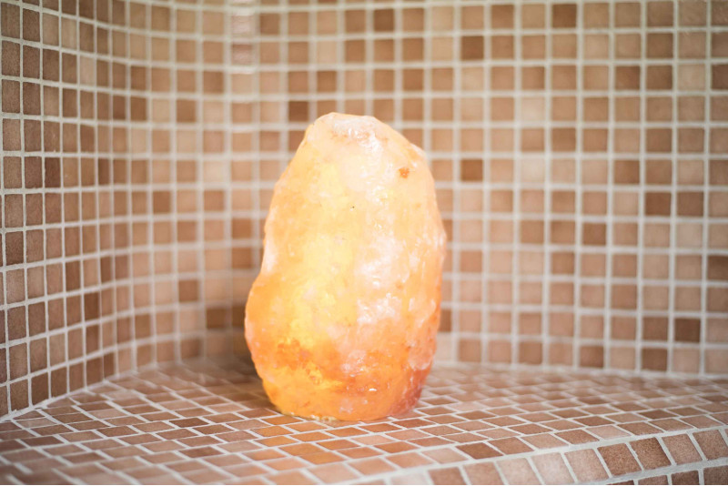 Saunę zdobią lampy z soli himalajskiej, które nie tylko zapewniają światło i przytulność, ale także korzystnie wpływają na zdrowie. Ogrzane kryształki soli emitują jony ujemne, które działają jak balanser, tworząc naturalny klimat np. w górach, nad morzem czy przy wodospadach.
