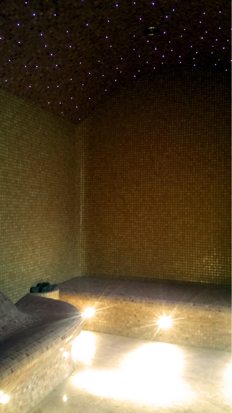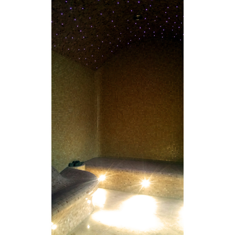 Światłowodowy system oświetlenia sufitu - "gwiaździste niebo". Pod ławkami przewidziano oświetlenie LED do oświetlenia podłogi.