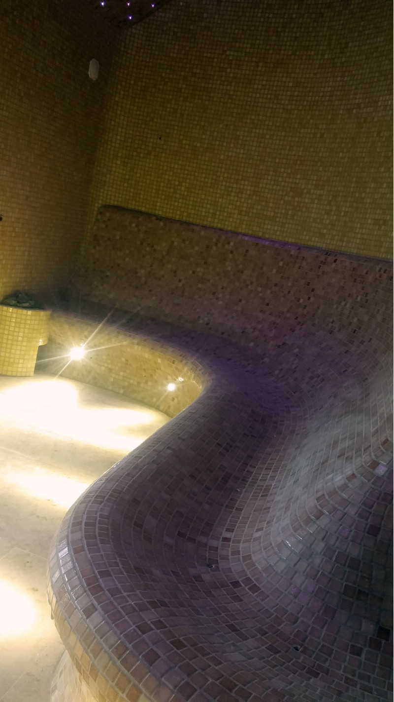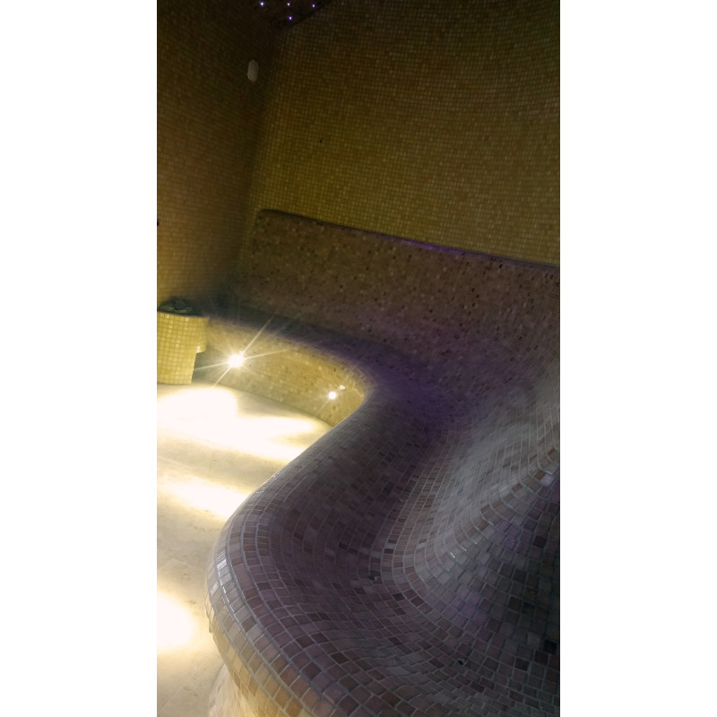 Ławki, ściany i sufity do sauny parowej wykonywane są indywidualnie ze specjalnego ekstrudowanego polistyrenu.