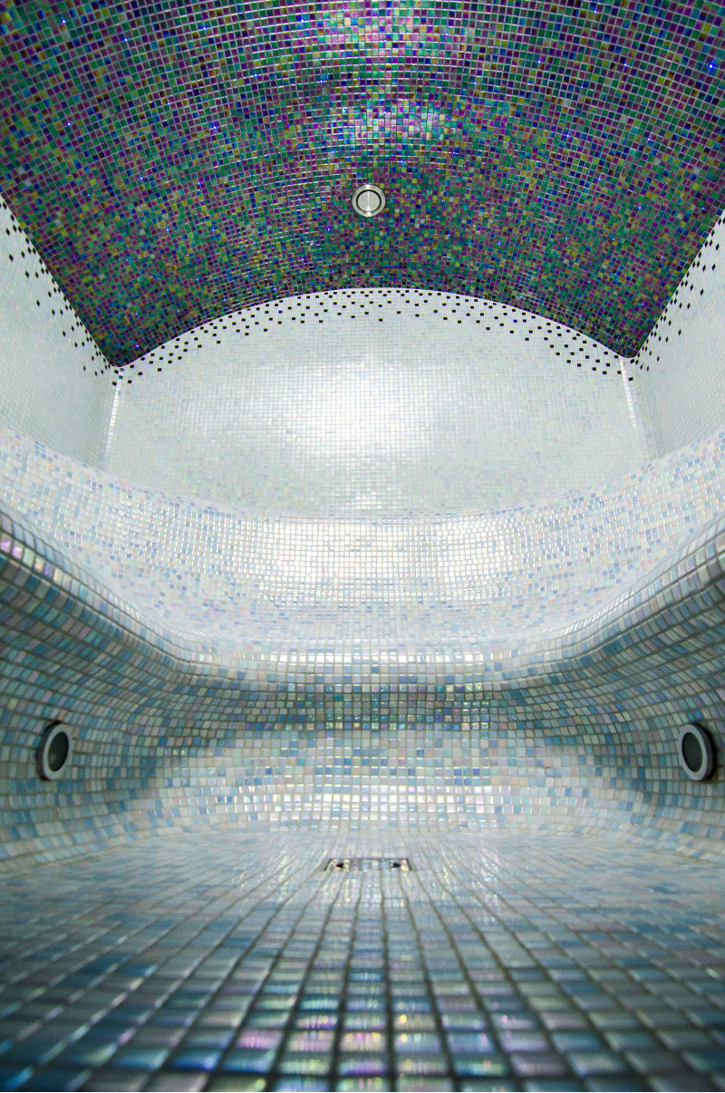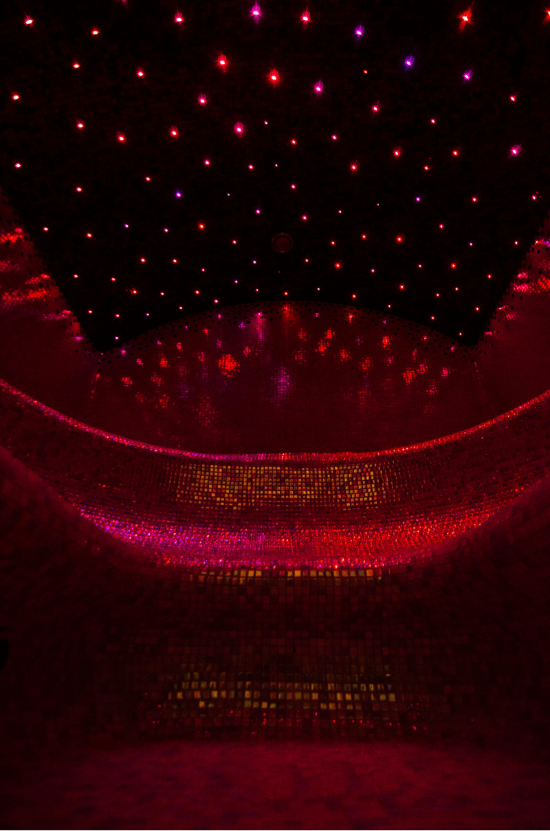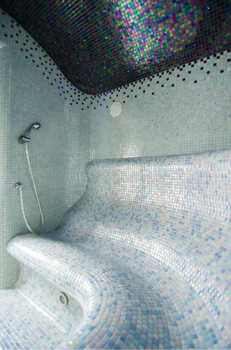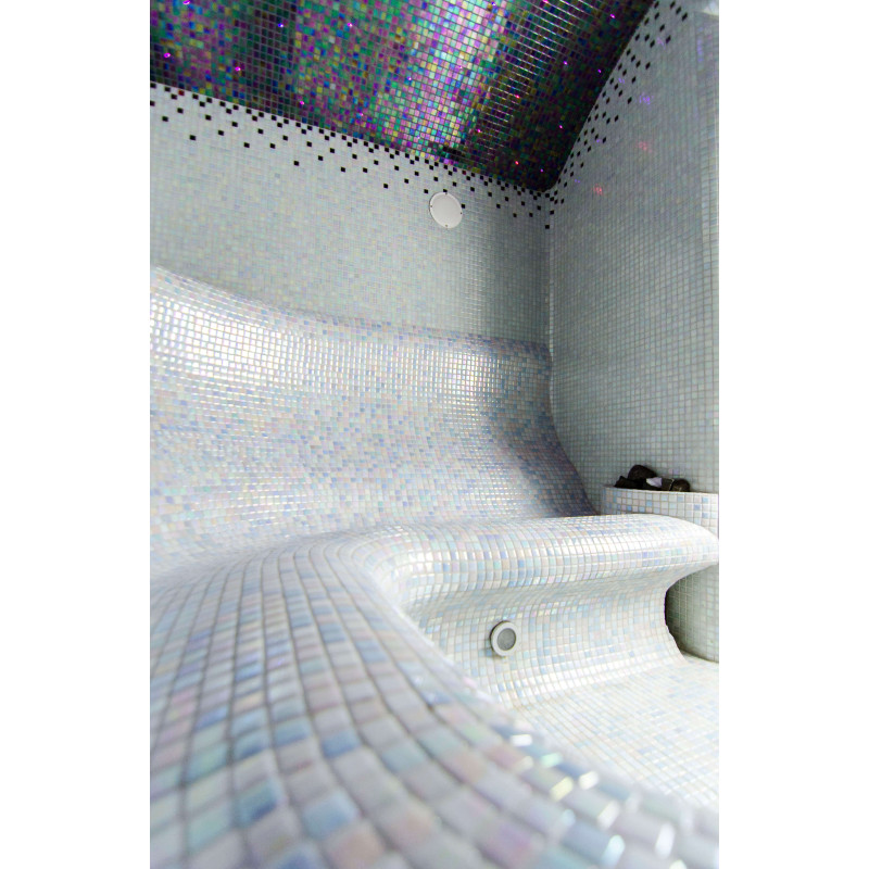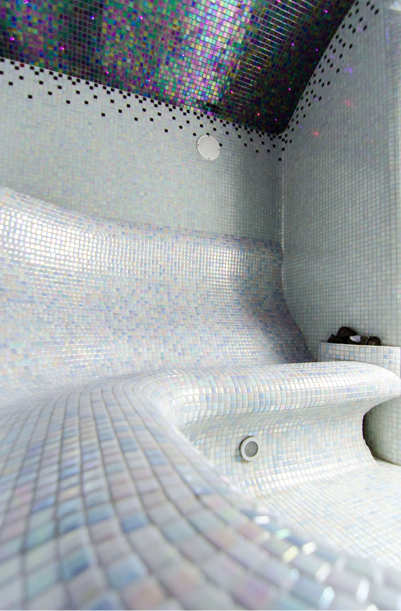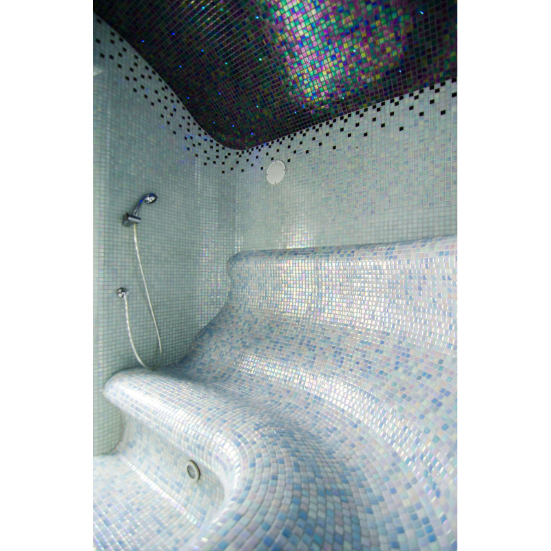 Ławki, ściany i sufity do sauny parowej wykonywane są indywidualnie ze specjalnego ekstrudowanego polistyrenu. Sufity mają łukowaty kształt, typowy dla każdej łaźni parowej, dzięki czemu nie może gromadzić się na nich para wodna. Pozycje siedzące, wygięte wygodnie ukształtowane ławki dla przyjemnego wypoczynku w saunie. Ławki są osuszane, aby zapobiec gromadzeniu się na nich potu i wilgoci.