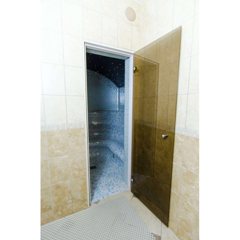 Drzwi szklane wykonywane są na indywidualne zamówienie. Drzwi są odporne na wilgoć i wahania temperatury. Ościeżnica - marmur.