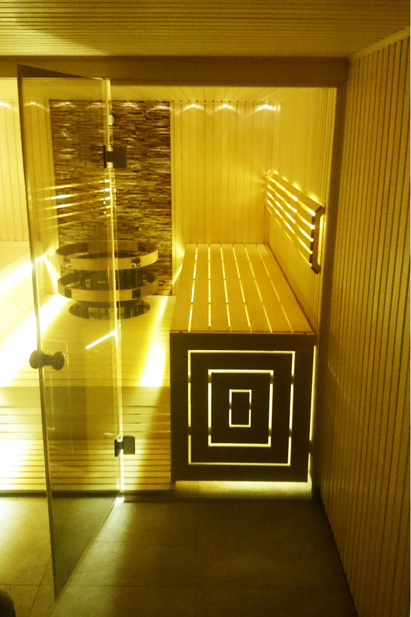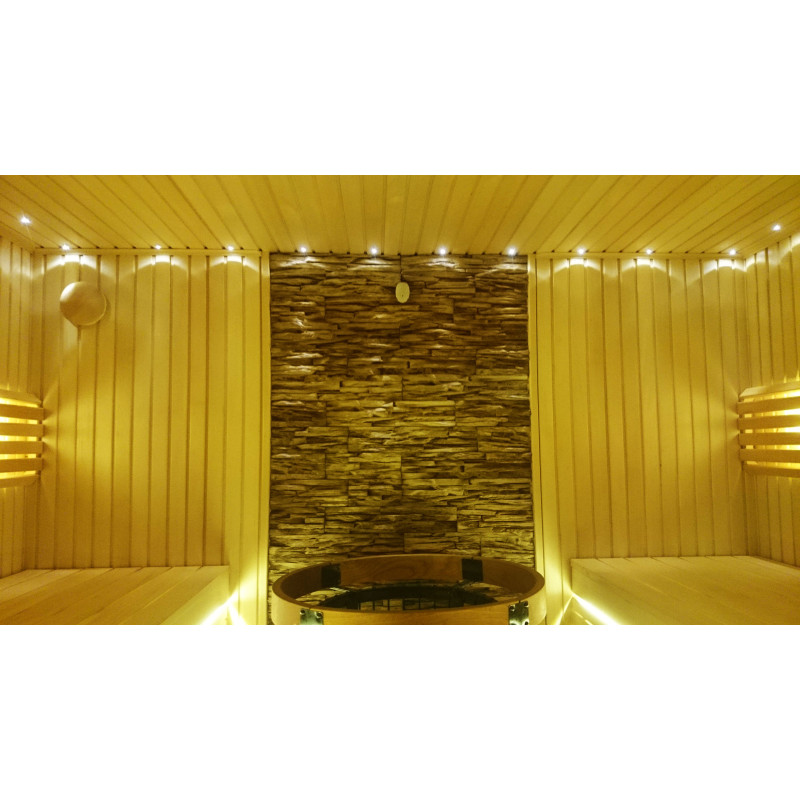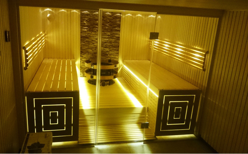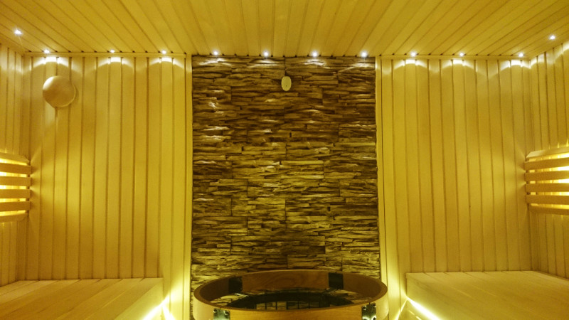 Do dekoracji sauny wybrano najwyższej jakości drewno lipowe.
