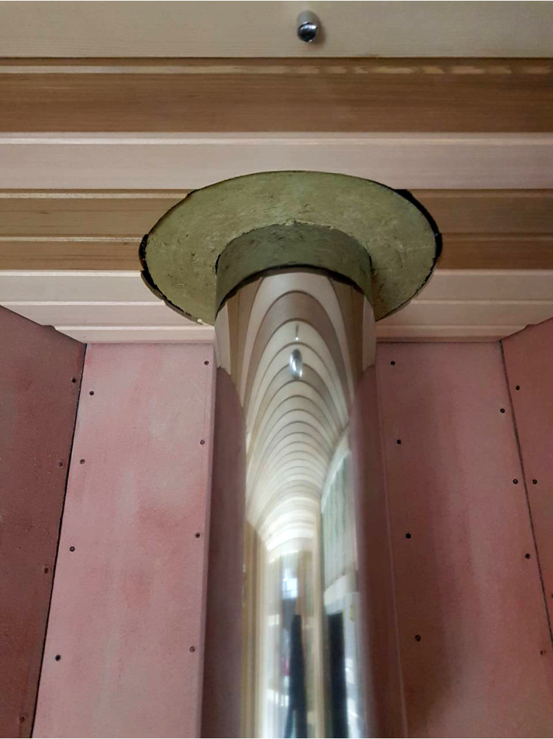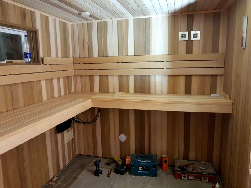 Ze względu na wysoką trwałość sauny wybrano drewno olchy i cedru kanadyjskiego. Drewno cedrowe ma tendencję do pochłaniania najmniejszej ilości ciepła, co zapewnia saunie większy komfort.