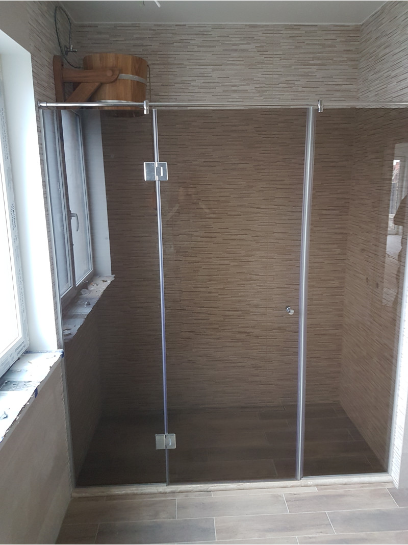 Obok sauny znajduje się kabina prysznicowa z 20l dębową wanną wylewaną z plastikowym wkładem. Wanna przeznaczona jest do schładzania po saunie, szczególnie dobrze sprawdza się w przypadkach, gdy nie ma innej możliwości schładzania. Łatwy w użyciu i instalacji. Wanna wykonana jest z dębu, kokardki ze stali nierdzewnej, lakierowane. Trwała i dobrze wyczyszczona wanna.