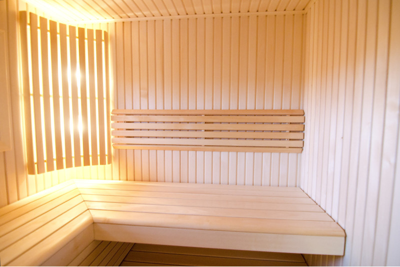 Oświetlenie – lampy Harvia zamontowane pod drewnianym oparciem zapewniają część relaksującego efektu sauny.