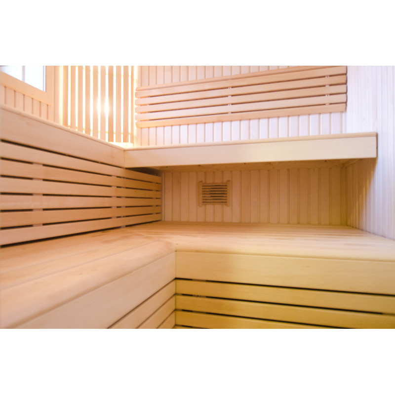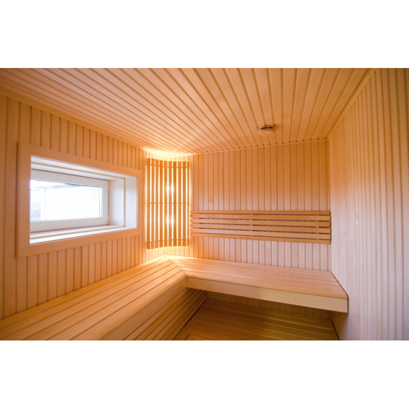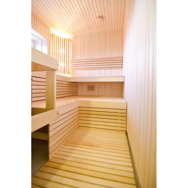 Okładziny ścienne i ławki wykonane są z najwyższej jakości drewna lipowego. Drewno jest niezwykle lekkie, co nadaje saunie poczucie przestrzeni.