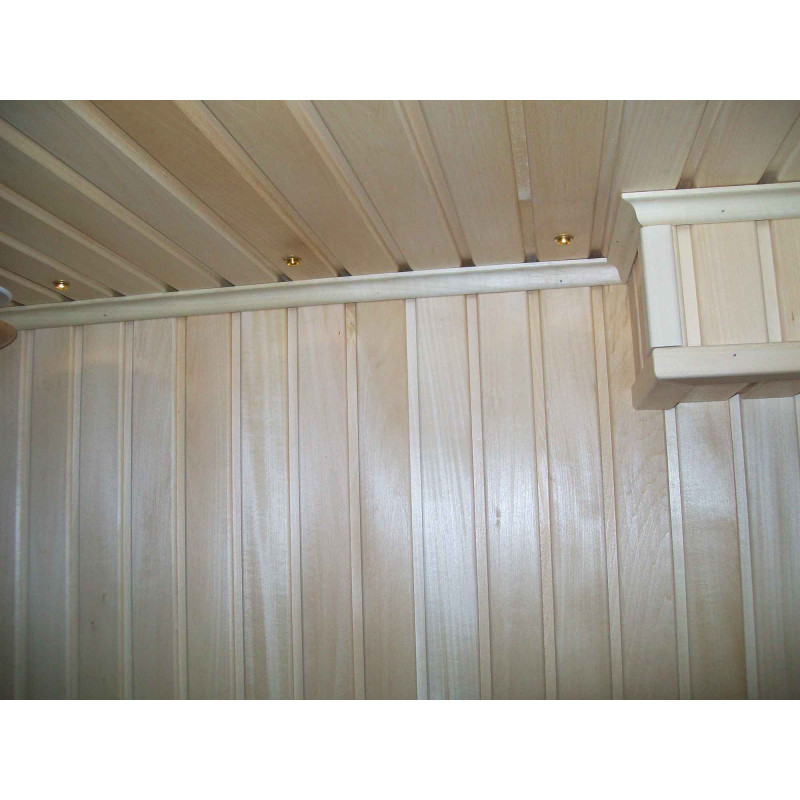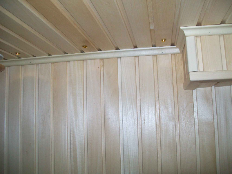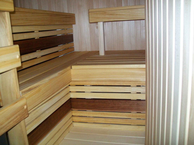 Ściany pokryte są specjalnym wodnym lakierem do sauny, ławki impregnowane są olejem parafinowym. Lakier chroni drewno przed tarciem, wysoką temperaturą, nie ma nieprzyjemnego zapachu. Drewno pokryte parafiną jest łatwiejsze do czyszczenia i konserwacji.