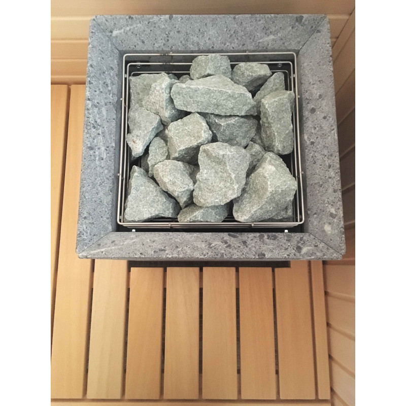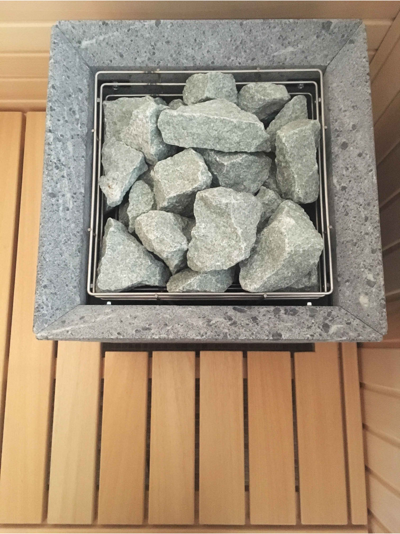 Grzejnik elektryczny Tulikivi Tuisku z wykończeniem ze steatytu. Kontrolowane za pomocą pilota. Wypełniony dużą ilością mieszanki diabazu oliwinu i kamieni jadeitowych. Ze względu na krótkie bezpieczne odległości od powierzchni palnych oraz wysoce niegrzejącą się powierzchnię grzejnika, jest to dobry wybór dla rodzin z dziećmi oraz do wbudowania grzejnika w ławki. Energia uwalniana przez jadeit ma moc leczenia wielu chorób. Wzmacniają się lecznicze właściwości podgrzewanego jadeitu. Polewanie kamienia wodą rozprowadza w saunie przyjemny zapach czystego otoczenia, ułatwiając oddychanie.