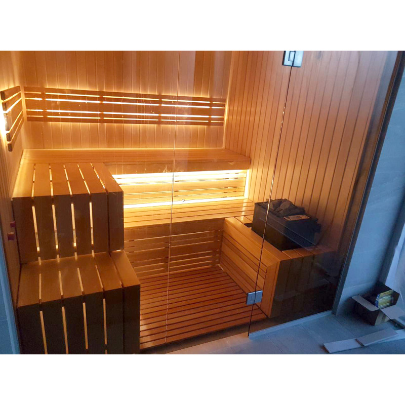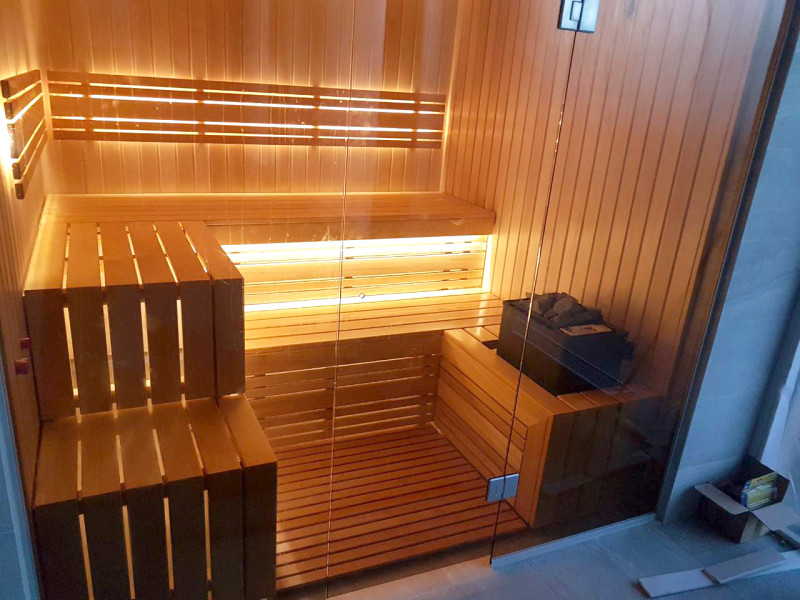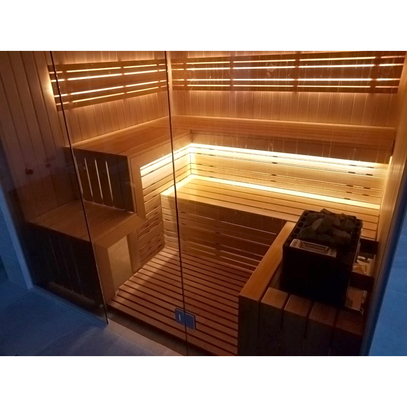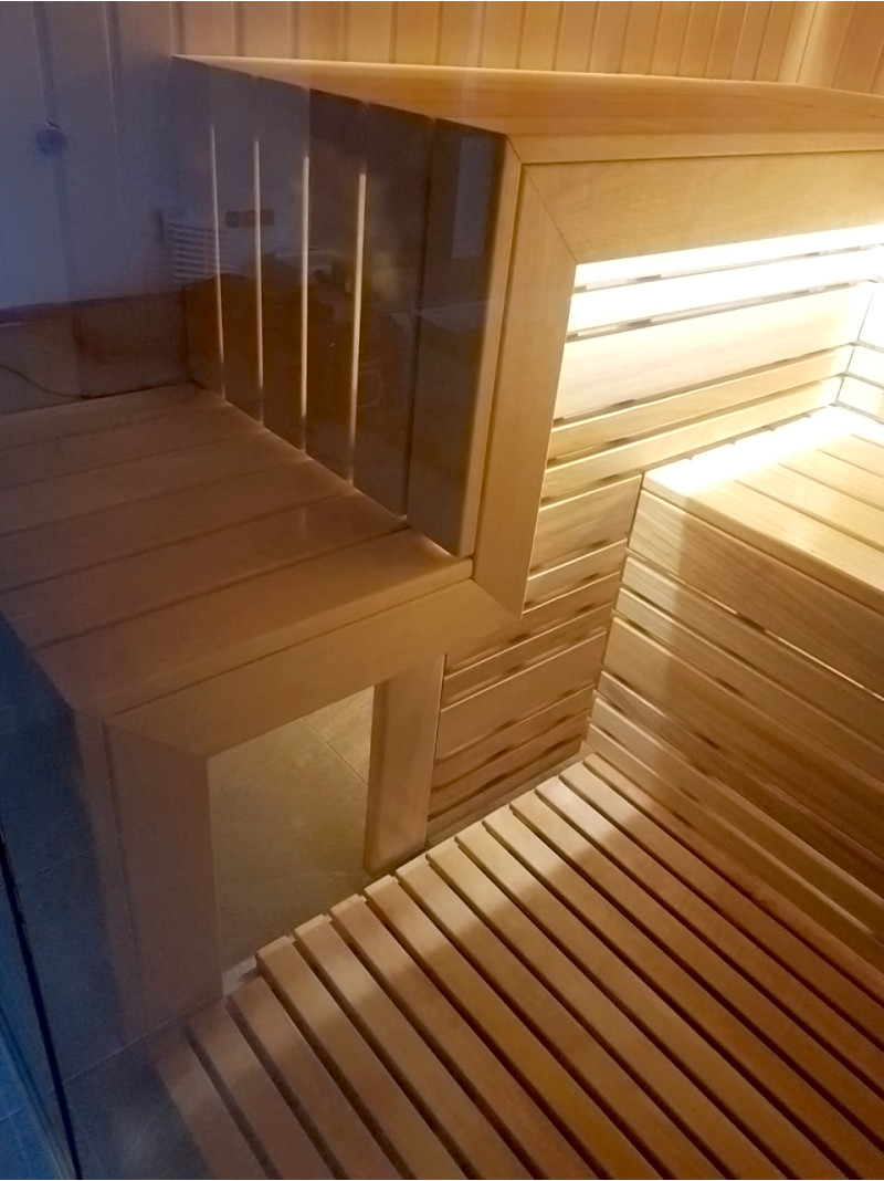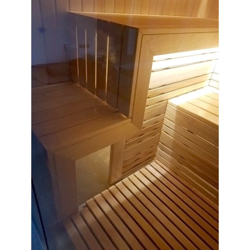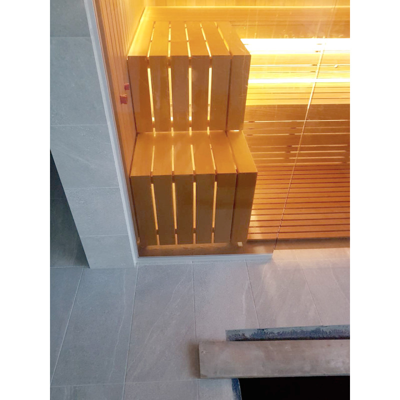 Drewno Abachi na ławki i oparcia to świetny wybór, ponieważ to wysokiej jakości drewno nie przegrzewa się i nie można się poparzyć siedząc na ławkach wykonanych z takiego drewna. Drewno cedrowe nadaje również nowoczesny wygląd wnętrzu sauny.