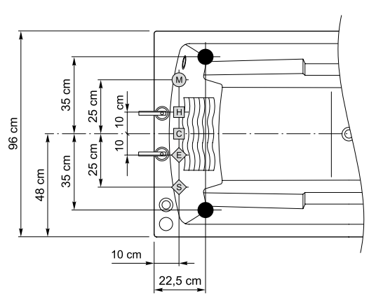◍ - Odpływ nadmiaru wody ø 50 mm (odpowiednie obie lokalizacje)